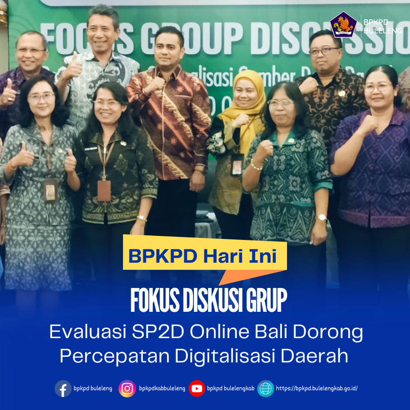 Dalam rangka optimalisasi dan implementasi Sistem Pembayaran SP2D Online, Badan Pengelola Keuangan Daerah (BPKAD) Provinsi Bali menggelar Focus Discussion Group (FGD) dengan narasumber utama Dirjen Bina Keuangan Daerah serta Pusat Data dan Informasi (Pusdatin) Kementerian Dalam Negeri. Acara ini diikuti oleh koordinator SP2D online dari seluruh Kabupaten/Kota di Bali, dengan fokus mengevaluasi penerapan SP2D Online di tingkat Provinsi Bali.FGD berperan sebagai wadah evaluasi implementasi SP2D Online di Pemprov Bali, Kabupaten Buleleng, serta Denpasar Kota. Melalui diskusi yang dipandu para narasumber, diharapkan adanya umpan balik untuk penyempurnaan integrasi sistem pembayaran daerah dengan pihak-pihak terkait, sehingga proses SP2D dapat berjalan lebih efisien, transparan, dan akuntabel.Kegiatan ini juga bertujuan memotivasi kabupaten/kota lain di Bali untuk segera menerapkan SP2D Online. Implementasi SP2D Online dipandang sebagai salah satu langkah penting dalam pelaksanaan Percepatan dan Perluasan Digitalisasi Daerah (P2DD). Dengan adopsi sistem ini, proses pembayaran anggaran daerah dapat dilakukan secara lebih cepat dan terintegrasi dengan ekosistem keuangan daerah secara digital.Penyelenggaraan FGD ini diharapkan menjadi momentum untuk mempercepat adopsi SP2D Online di seluruh daerah Bali, serta meningkatkan koordinasi antara pemerintah daerah, kementerian terkait, dan pelaksana teknis di tingkat daerah. Hasil evaluasi dari forum ini akan menjadi dasar perbaikan kebijakan dan implementasi SP2D Online ke depan.
